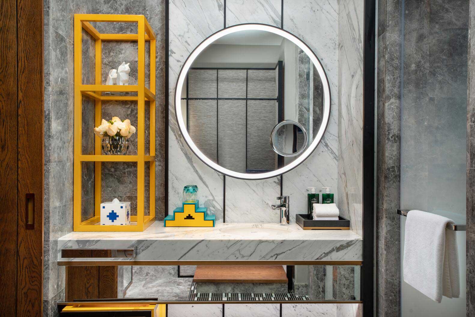 酒店大堂大氣而不失現代藝術美感,走進其間,隨處可見極具當地風格的藝術品與裝飾,隱約可見香巴拉的縮影。頂部設計對光影的巧妙運用可謂巧奪天工,自然光線透過鏤空屋頂灑落下來,與地面交相輝映,且在高原寒冷地區用特色小景、綠植裝點,讓人如同置身熱帶溫室,光影交錯間,營造出“眼有星河,心藏日月”的詩意畫面。