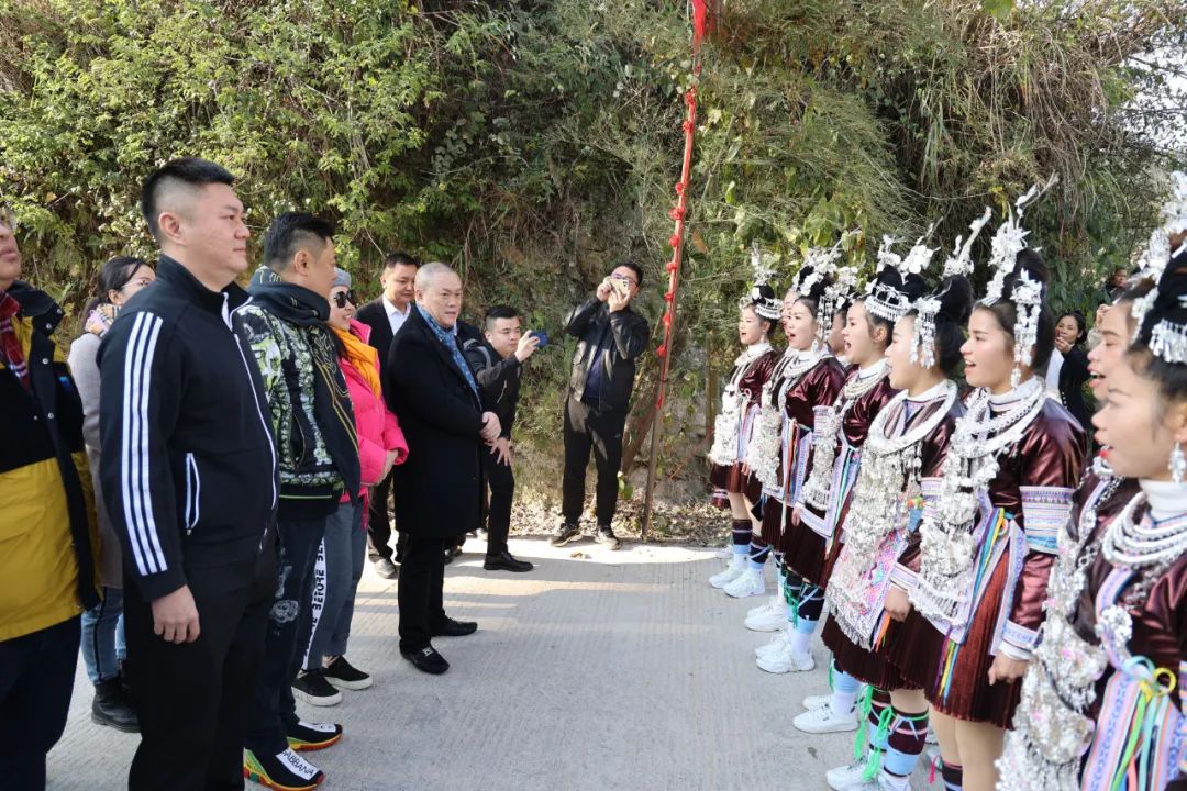 圖 | 當(dāng)?shù)囟弊迦罕娨远闭Z(yǔ)唱山歌儀式歡迎博大董事會(huì)一行