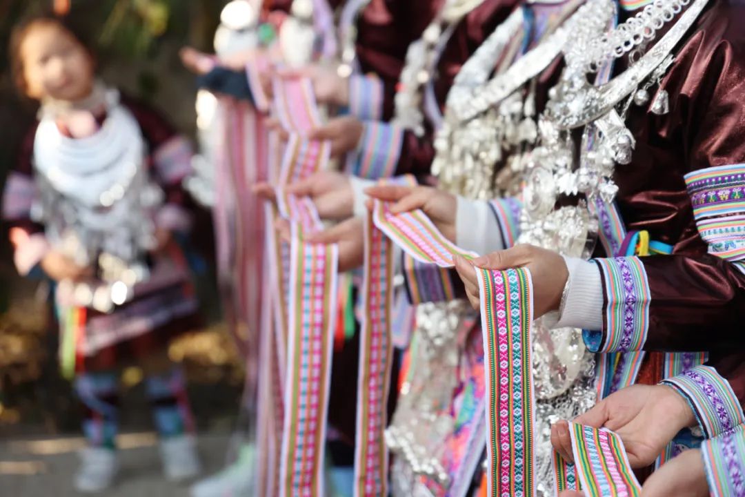 圖 | 當(dāng)?shù)囟弊迦罕娊o客人送上民族獨(dú)有的寓意歡迎和祝福的彩帶